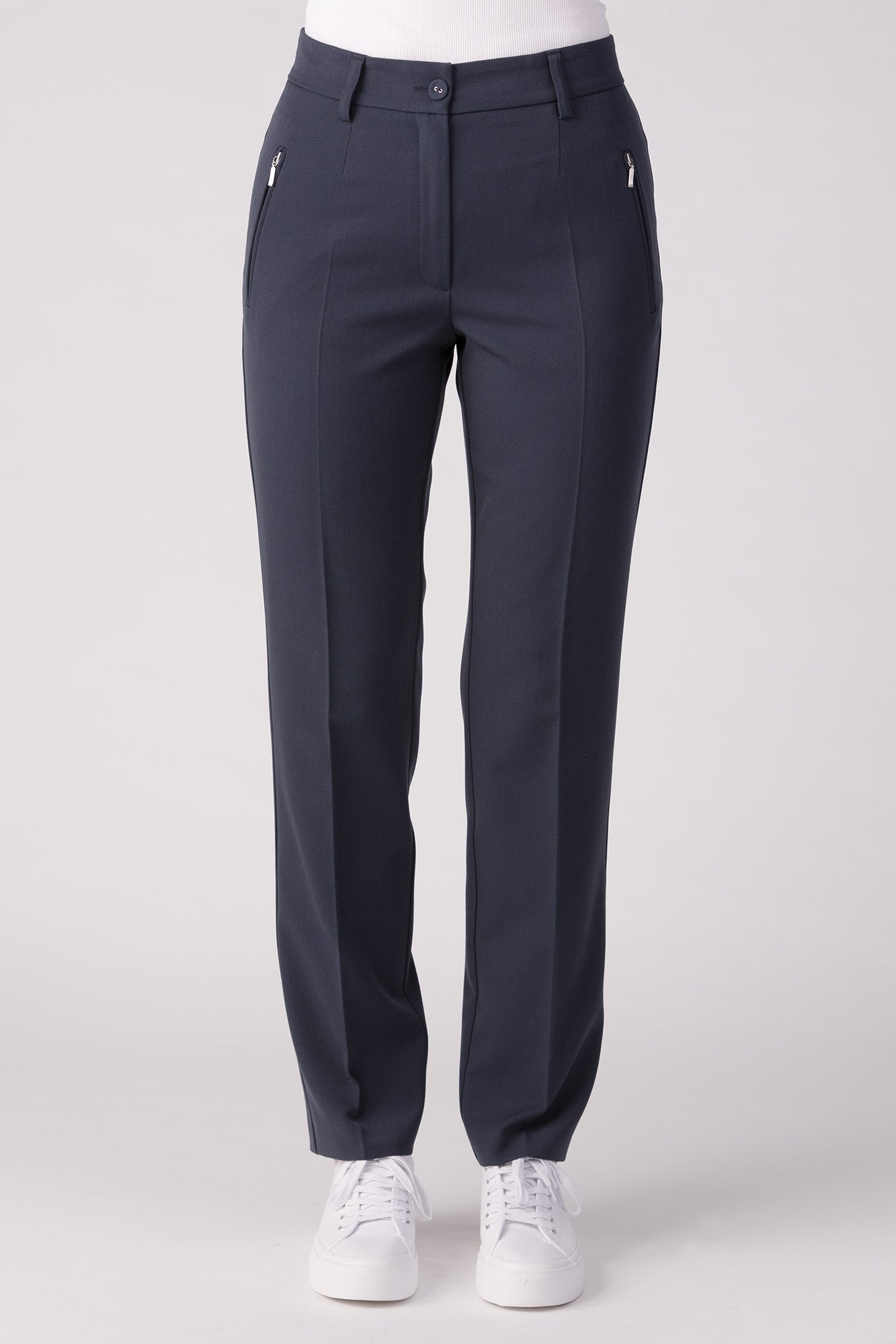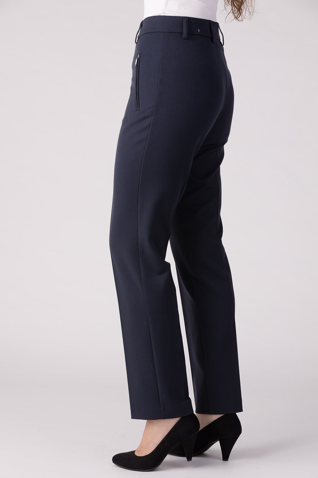 15620-415-24 / Regular, High Waist - Marine , is a loose and comfortable trousers with a high waist in a comfortable and light garbadine quality. It is made in our well-known and tested fabric with stretch. The good quality means that the trousers keep their shape so that you avoid knees or getting bigger during the day.