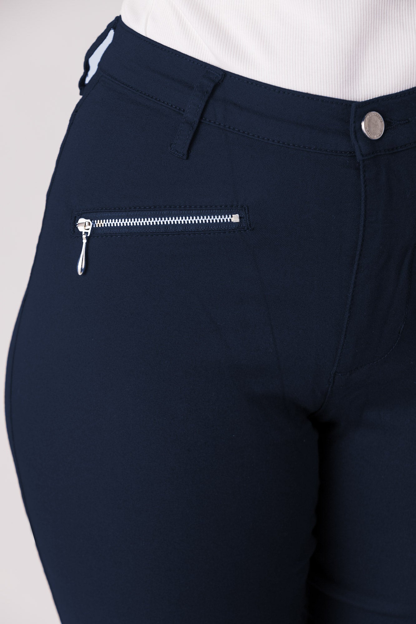 15628-430-24 / Slim, High Waist - Marine , are tight-fitting trousers with a high waist in a comfortable and light fabric quality for year-round use. It is made in our well-known and well-tested fabric with super stretch, which keeps the color wash after wash. The good quality means that the trousers keep their shape so that you avoid knees or getting bigger during the day.